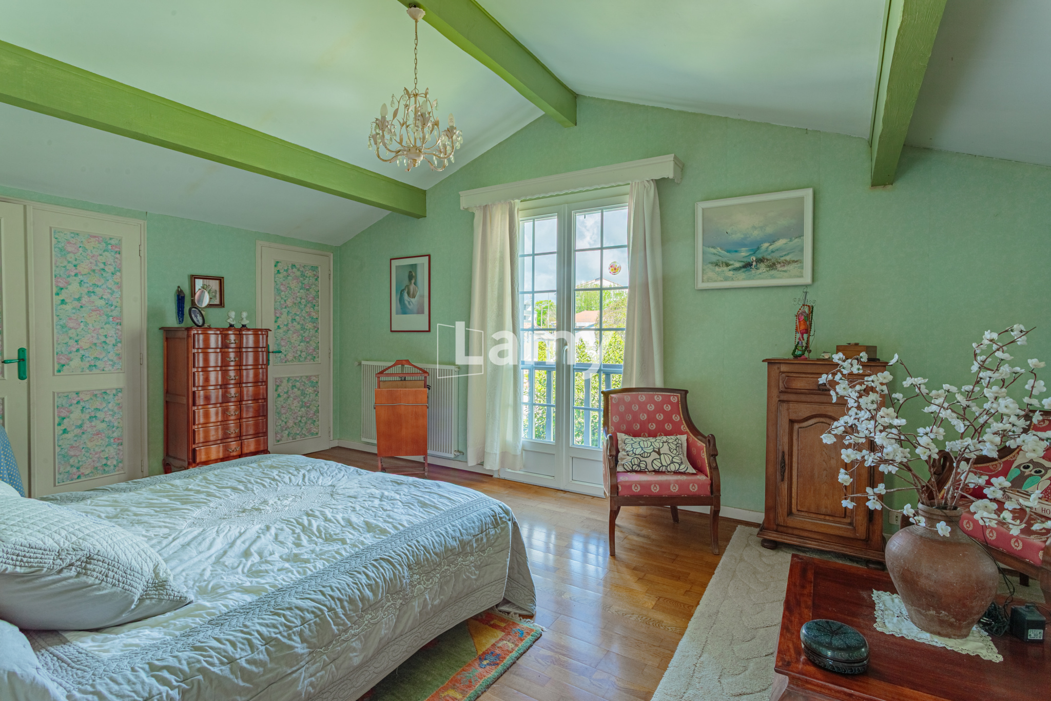 A l'étage, deux grandes chambres supplémentaires et une salle de bains.